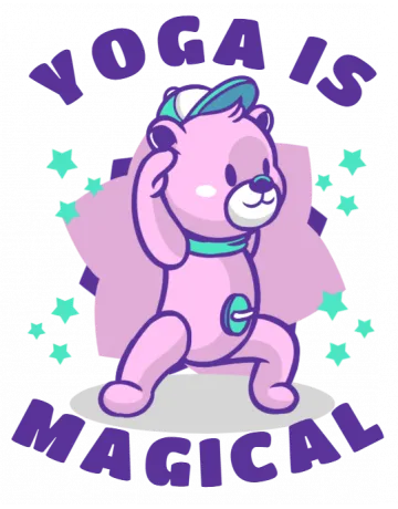 A cartoon bear in a yoga pose with the words 'Yoga is Magical' written around it.