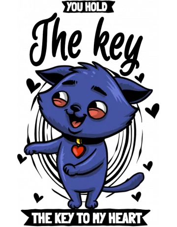 A cartoon cat holding a key to the viewer's heart.