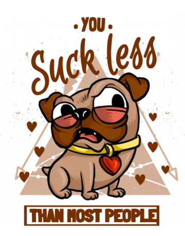 A cartoon pug with a heart on its collar and a lovey-dovey theme